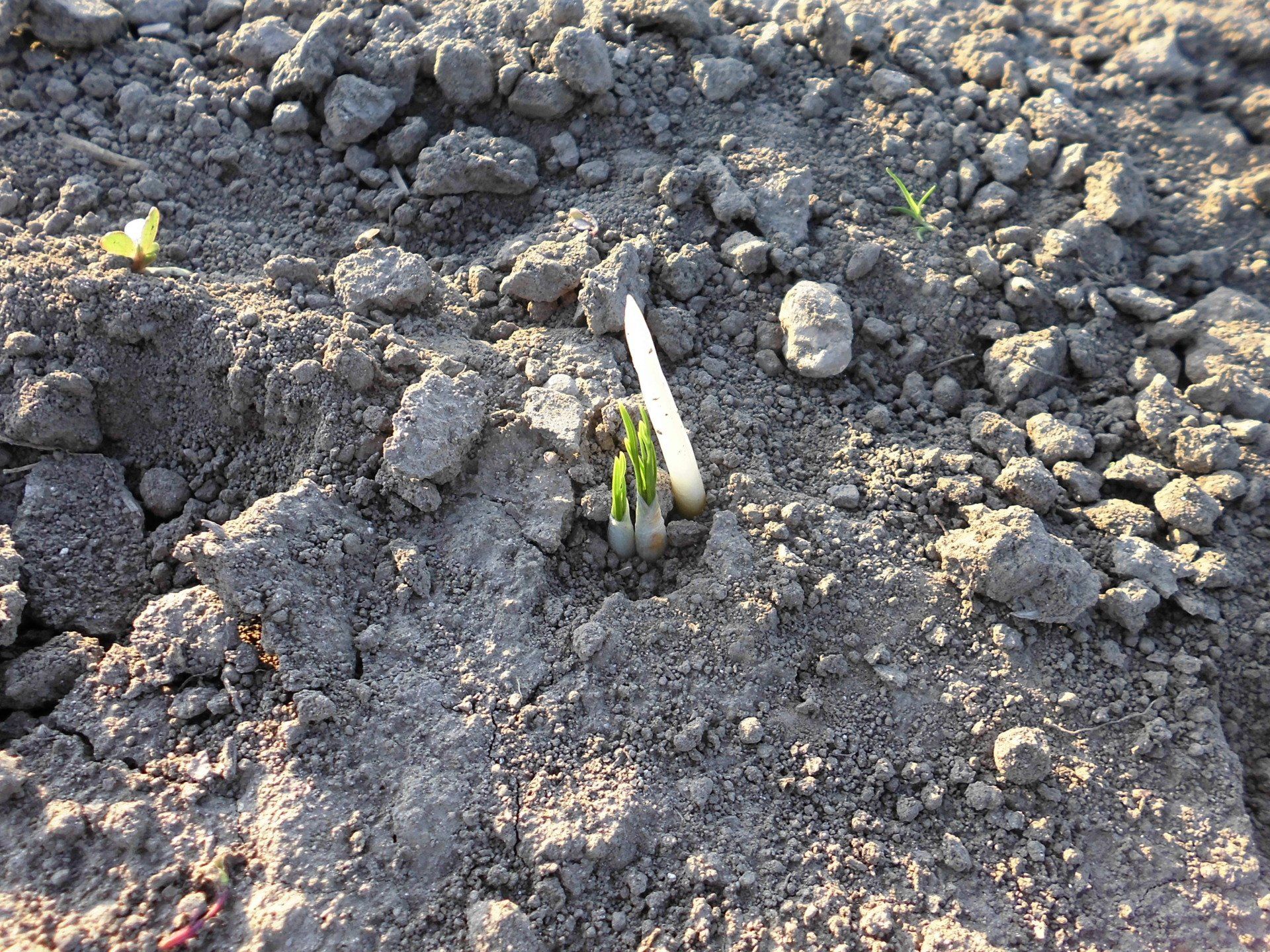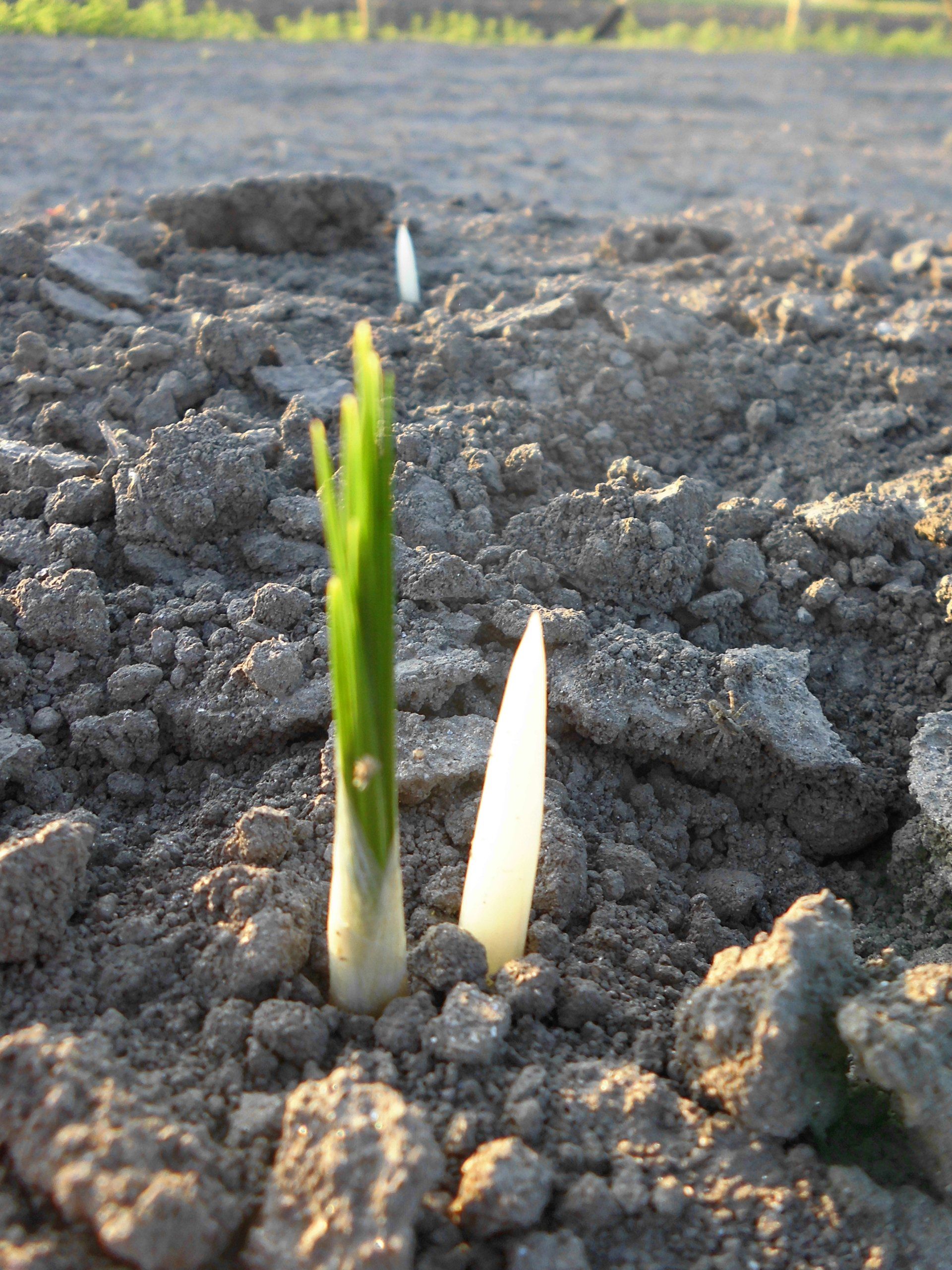 La pianta adulta è costituita da un bulbo-tubero di un diametro di circa 5 cm. Il bulbo contiene circa 20 gemme indifferenziate dalle quali si originano tutti gli organi della pianta, in genere però sono solo 3 le gemme principali che daranno origine ai fiori e alle foglie, mentre le altre, più piccole, produrranno solo bulbi secondari. Durante lo sviluppo vegetativo dalle gemme principali del bulbo si sviluppano i getti, uno per ogni gemma; per cui da ogni bulbo ne spunteranno circa 2 o 3. I getti spuntano dal terreno avvolti da una bianca e dura cuticola protettiva, che permette alla pianta di perforare la crosta del terreno.