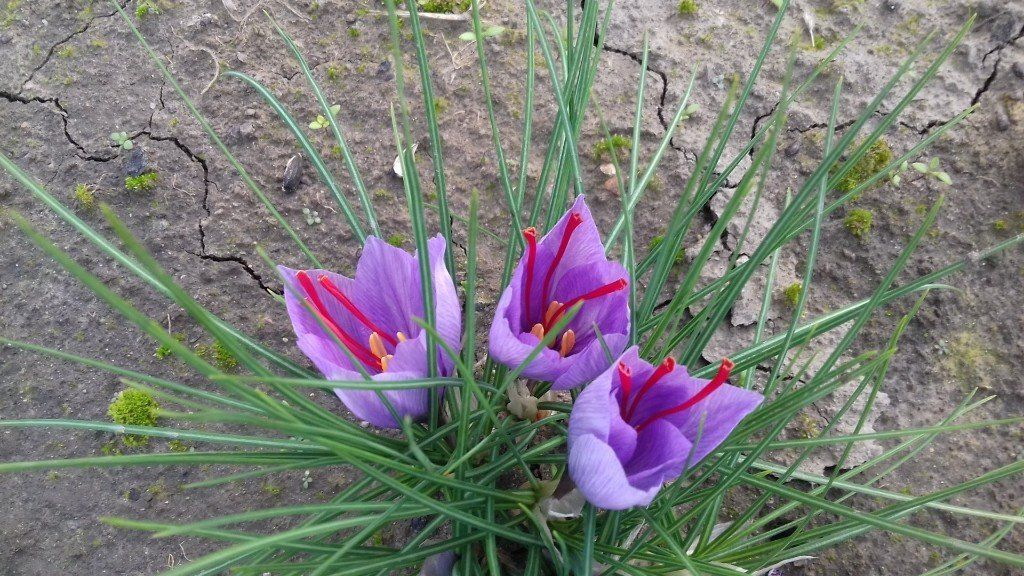 sono molto strette e allungate. In genere raggiungono la lunghezza di 30/35 cm, mentre non superano mai la larghezza di 5 mm. Il Crocus Sativus